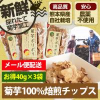 農薬不使用 熊本県産菊芋チップ 糖質制限 便秘対策に水溶性食物繊維イヌリンたっぷり ノンフライの焙煎チップ 菊芋ポリポリ(40g入り)3袋 通販